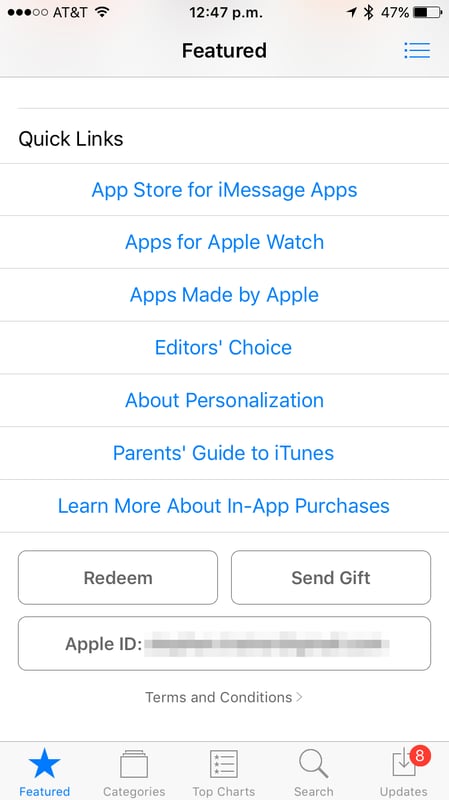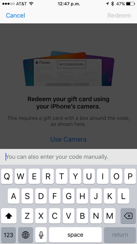 - In the App Store app on your device, go to the home page, scroll down and choose Redeem: