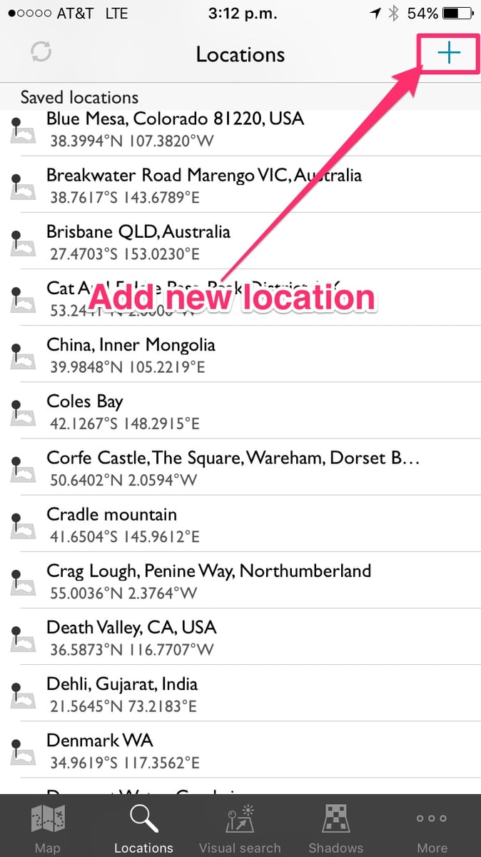 Firstly, on the locations screen, click ‘+’ to add a new location: